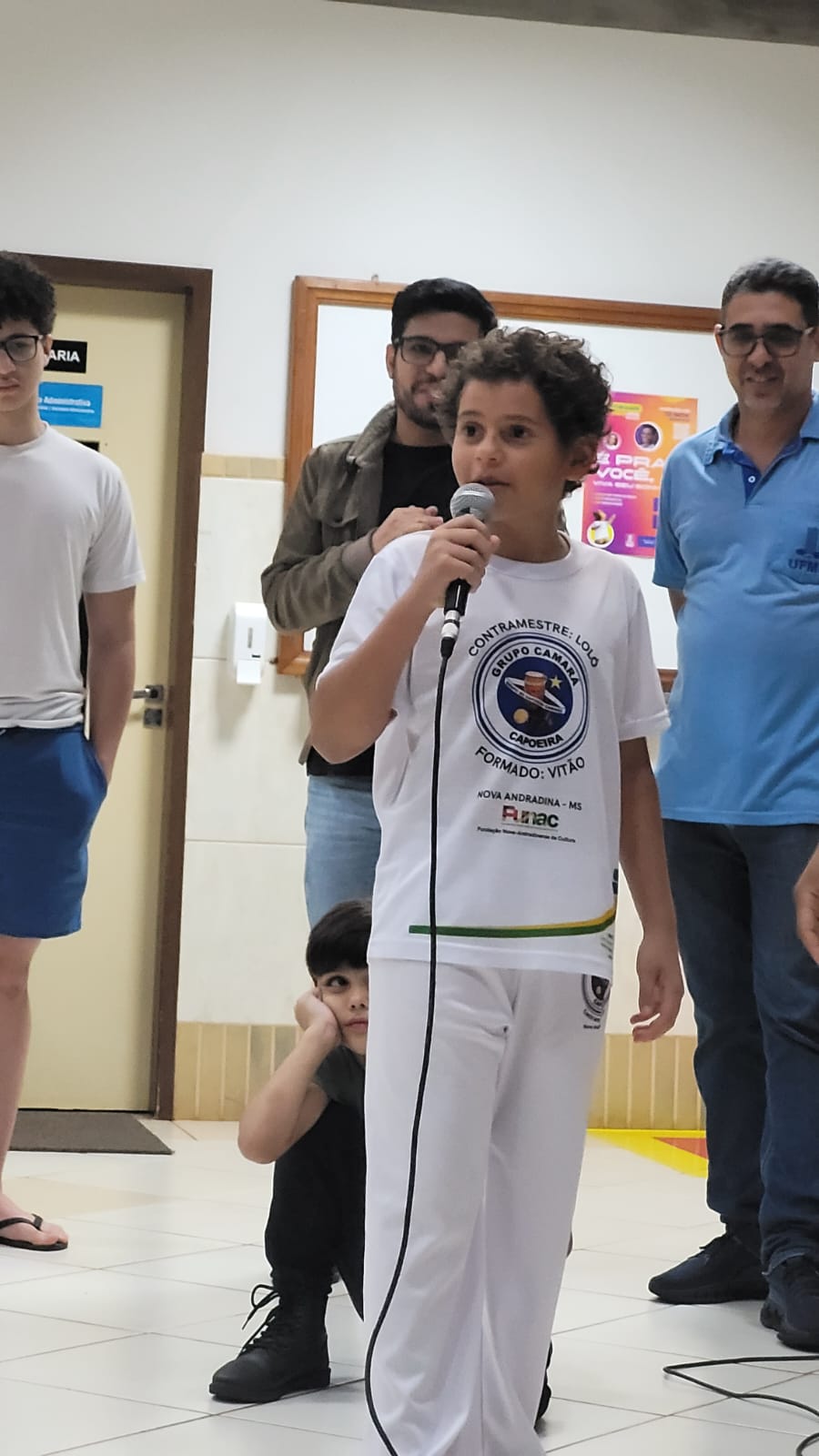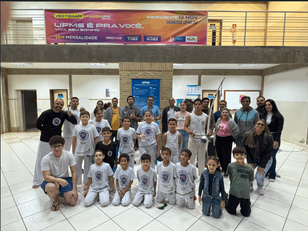 No dia 29 de outubro de 2025, o Projeto Intervalo Cultural, promovido pela UFMS, Campus de Nova Andradina, foi palco de uma vibrante e envolvente apresentação de capoeira. A atividade, comandada pelo professor Vitão, reuniu diversos alunos que mostraram talento, energia e muita dedicação à arte brasileira que mistura luta, dança e música.